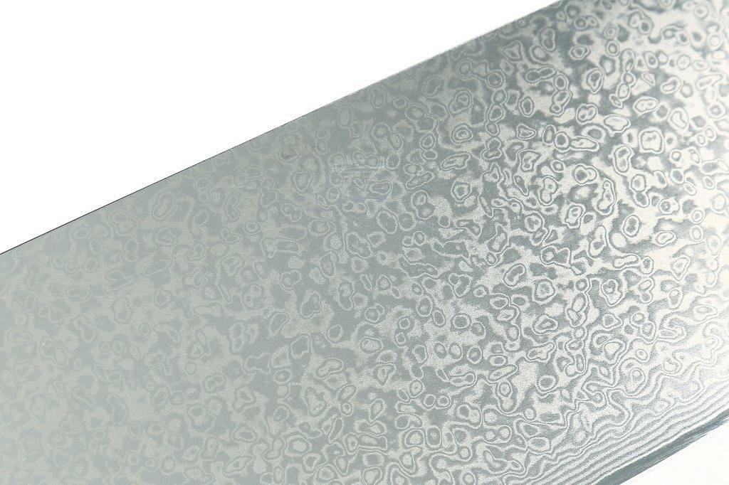 A lâmina de aço de Damasco foi artificialmente trabalhada pela técnica de forjamento de processamento de lentes em uma fábrica. A faca é bem equilibrada e fácil de usar para profissionais e entusiastas da culinária.
