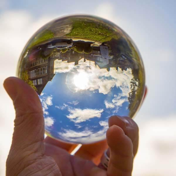 Procurando uma nova maneira criativa de capturar seus momentos? Mantenha esta perfeita esfera de cristal na palma da mão para ver o mundo refletido na sua frente. Leve com você em todos os lugares para obter essas fotografias criativas.