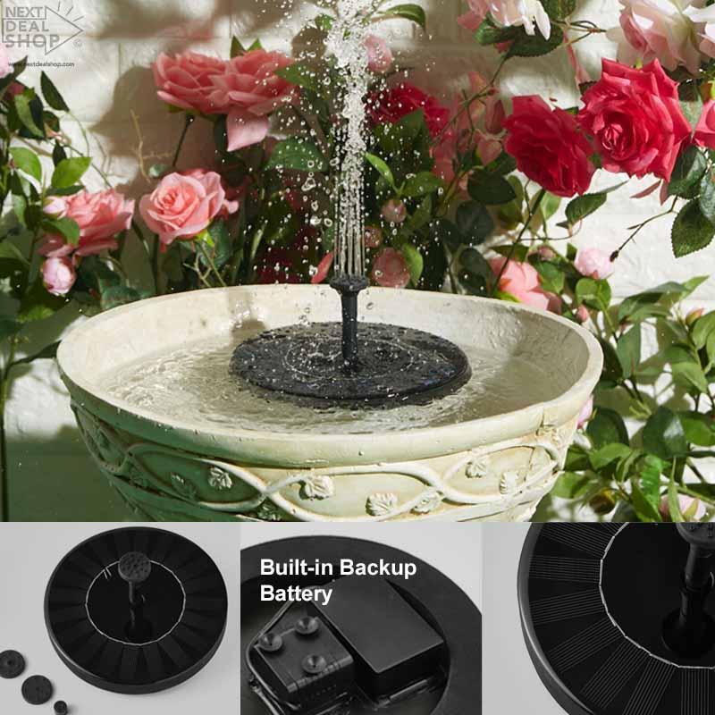 Crie uma atmosfera encantadora no seu jardim com este kit! Com bateria de reserva embutida, você pode finalmente ter sua fonte durável por quase 1 hora depois de ter sido exposta ao sol. Faça a sua fonte disparar água mesmo quando o sol é bloqueado pelas nuvens! A bateria interna proporcionará eletricidade temporária, por um tempo, antes de precisar carregar novamente!