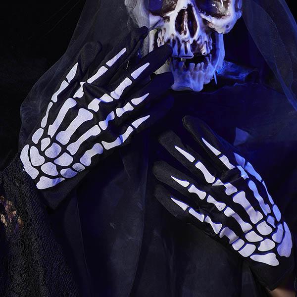 Vestindo-se como um esqueleto? Complete o seu look com estas luvas 3D Skeleton! Elas vão dar um grande final ao seu traje, mantendo as mãos quentes em uma noite fria de outubro. Além disso, são antiderrapantes e confortáveis ??para usar em atividades ao ar livre ou esportivas, como caminhadas e pesca. Super prática para acessórios de Halloween!
